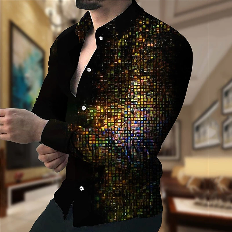 Camisa con estampado de cuadrícula para hombre, camisa informal de manga larga por mayor