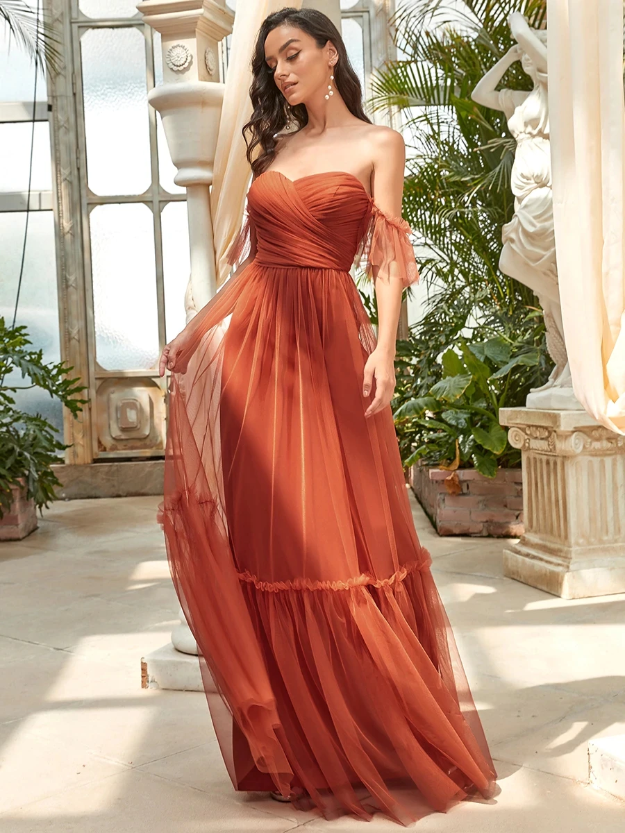 Elegante vestido De noche De tul tirantes caídos por mayor